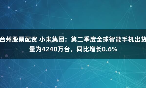 台州股票配资 小米集团:第二季度全球智能手机出货量为4240万台,同比增长0.6%